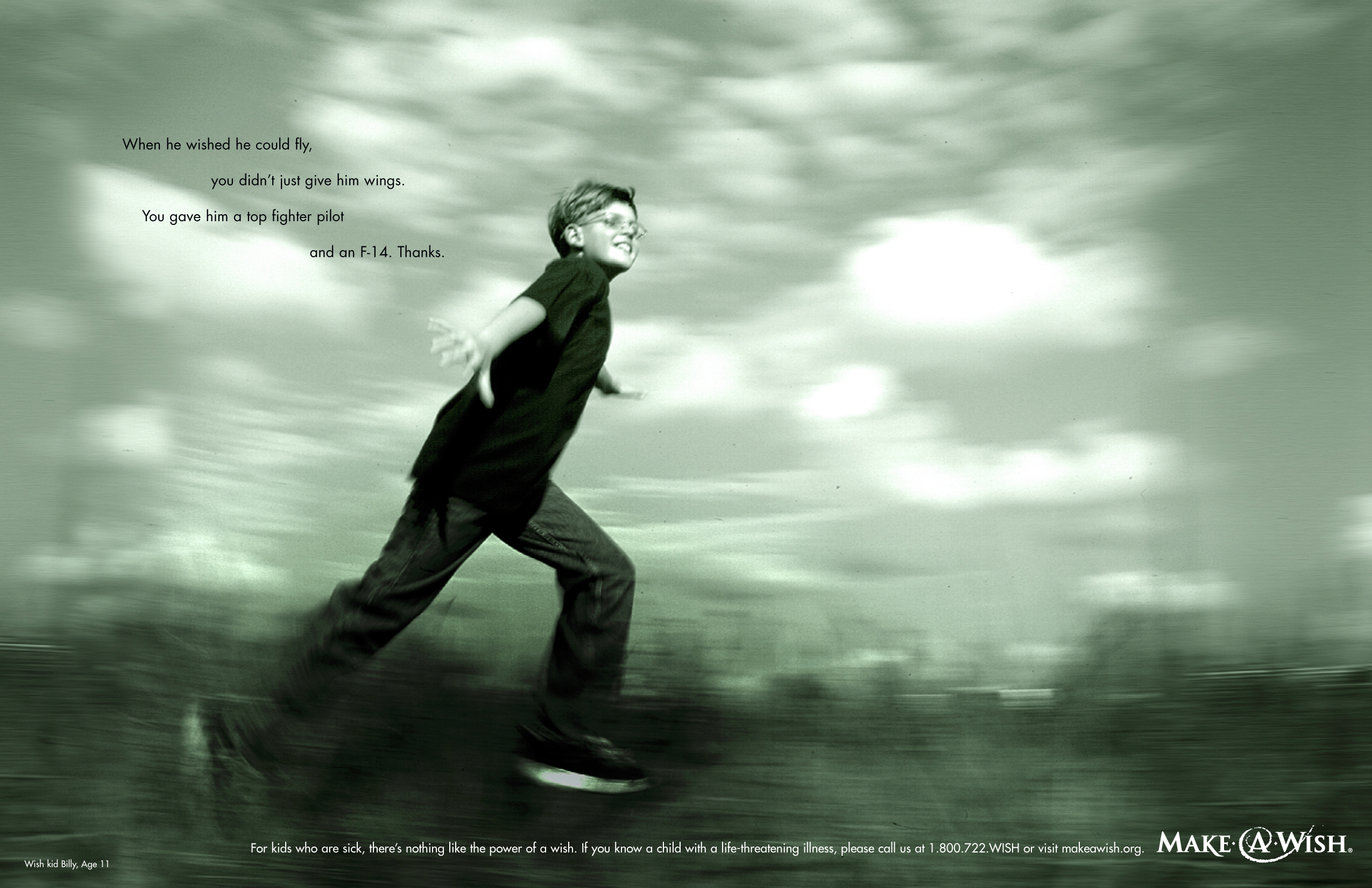 i had the privilege of creating the very first national campaign for make-a-wish foundation while at marc advertising. this print and television campaign featured actual make-a-wish children. the experience is one i will never forget. winner of 4 gold pittsburgh addy awards, the district two addy award and a national finalist for the prestigious AAAA’s o’toole public service awards.